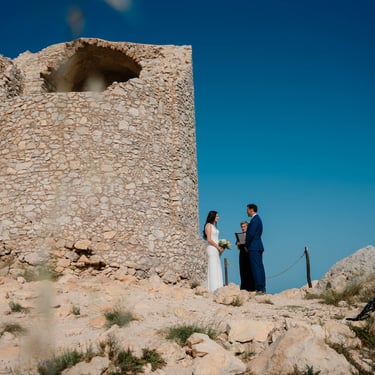 Perched on a rugged cliff within a protected natural reserve, Torre di Capo Rama is a striking and secluded setting for an intimate elopement. The ancient watchtower, overlooking the endless blue of the Tyrrhenian Sea, creates a dramatic backdrop where history meets raw coastal beauty. With waves crashing against the rocks below and the warm Sicilian sun painting the horizon, this location is ideal for couples seeking a wild, untamed atmosphere infused with romance and authenticity.
