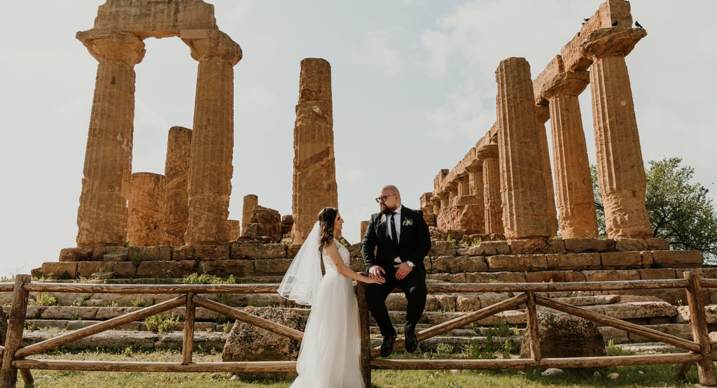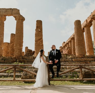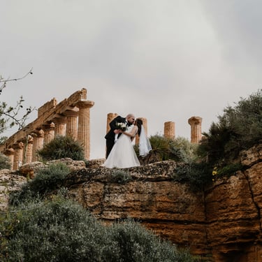 Experience the charm of an intimate Sicilian wedding with a civil ceremony in Agrigento, a symbolic celebration at the Valle dei Templi, and a cozy dinner with close family at Il Casale Federico
