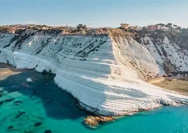 If you're envisioning a symbolic ceremony with up to 10 guests in a setting that feels both otherworldly and deeply romantic, Scala dei Turchi is the perfect choice. Located between Realmonte and Porto Empedocle in southern Sicily, this stunning white limestone cliff rises majestically from the turquoise Mediterranean Sea, resembling a natural staircase, hence the name "Stair of the Turks."